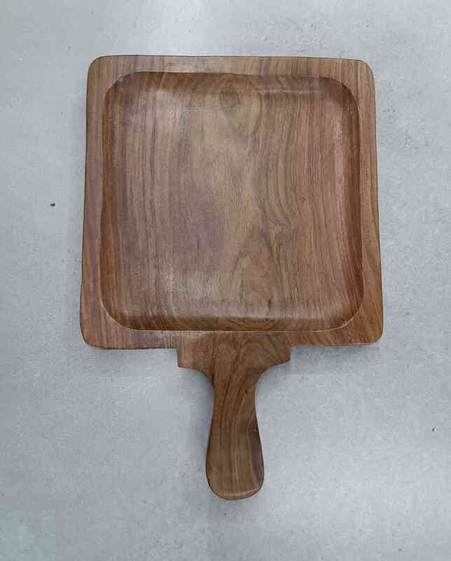 Wooden Platter W Handle Squ. 10x10